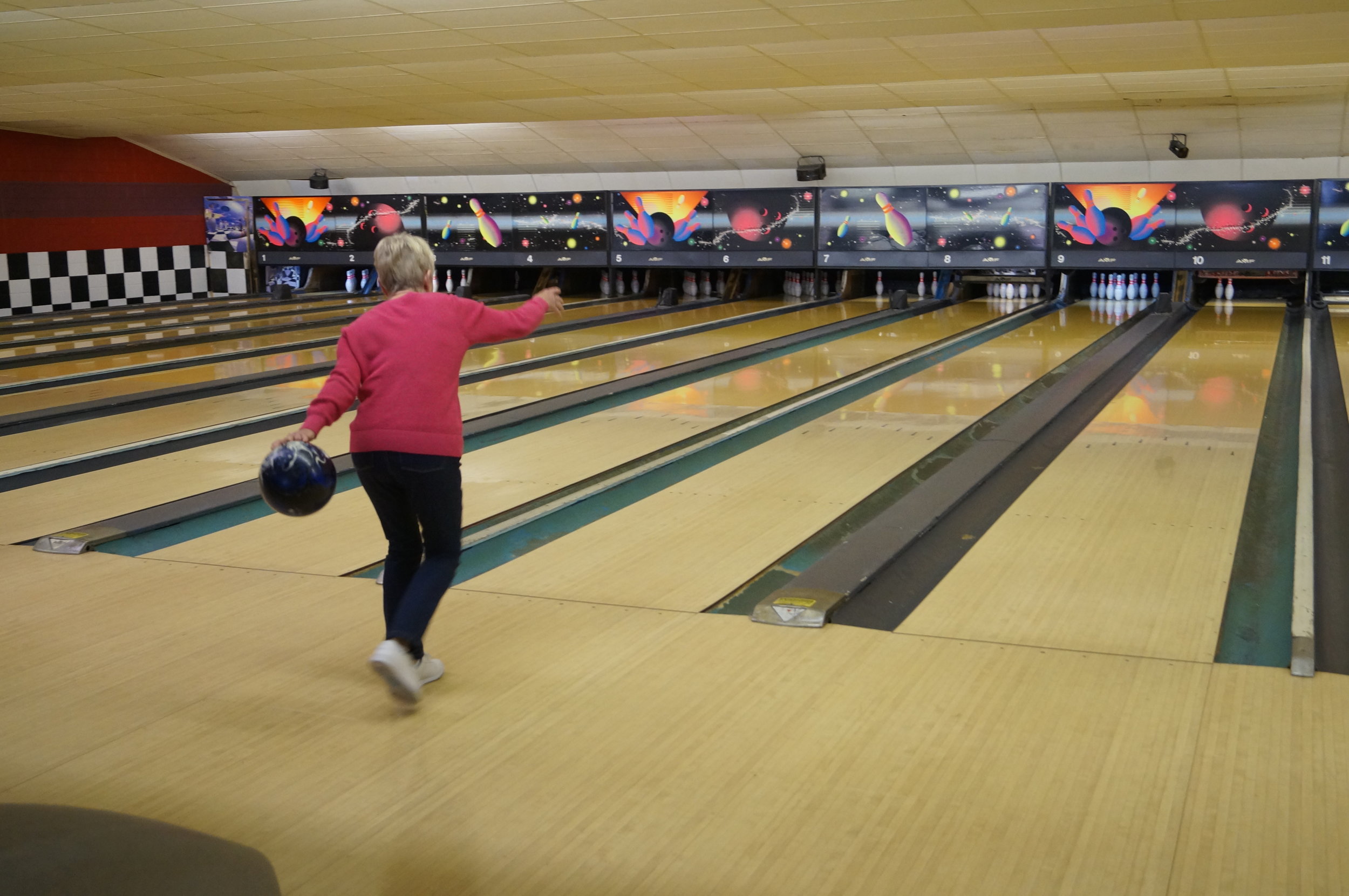 September ended with a bit of wine (a disappointing visit to Chateau Morrisette Winery and Restaurant) and fog. The fall sun and rain made the plants on our lot thrive. On foggy days we still had stuff to do....like bowling. I am not that good at it. If only I could swap my golf and bowling scores.